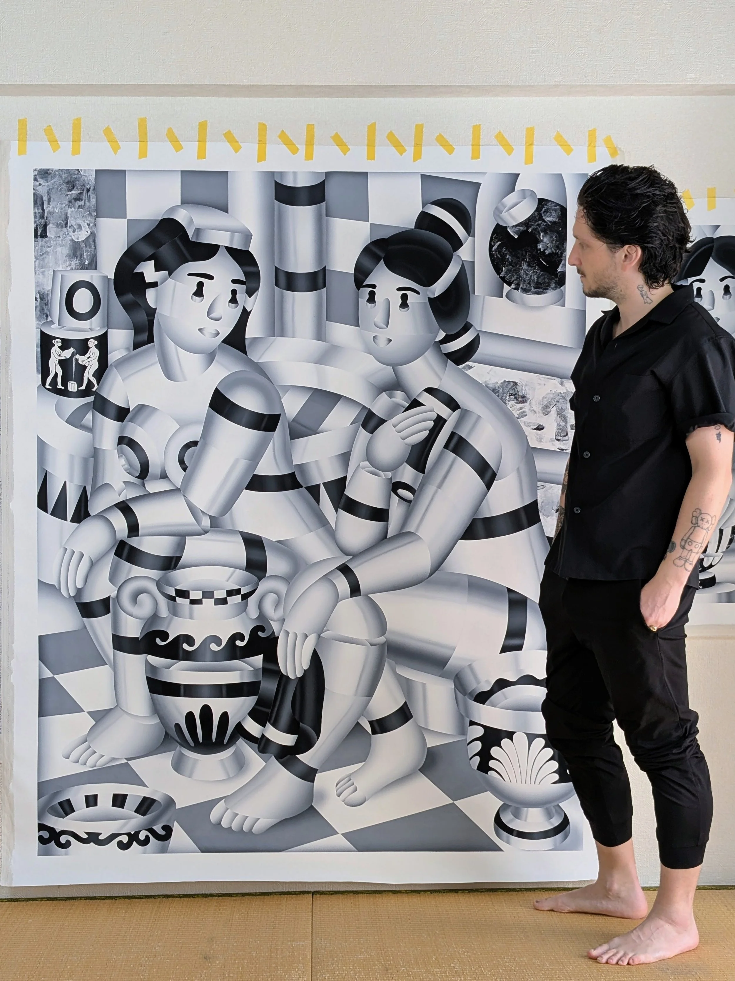 Geoffrey Bouillot is a French artist based in Tokyo since 2011. His work explores the dialogue between popular culture and ancient archetypes between industrial modernity and the spirituality of form. Influenced by manga, Japanese minimalism, and the French avant-garde of the 20th century, he creates geometric and modular figures that are both human and mechanical.