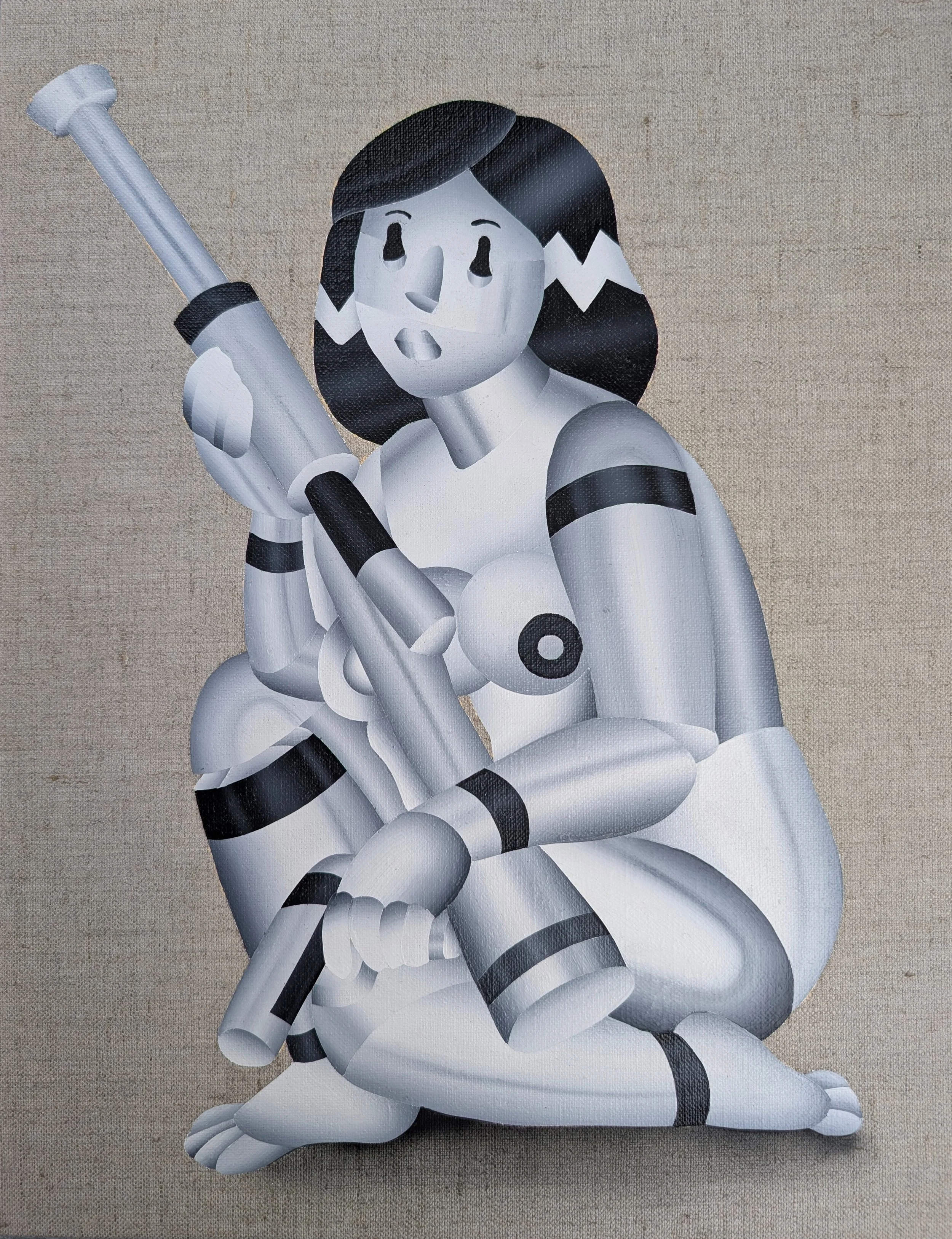 ❮ ❯ Warlord A resistance fighter standing with her weapons. A figure of strength and quiet defiance in monochrome. 2025 — Acrylic on canvas 41 × 32 cm — Depth: 2 cm Price: $790